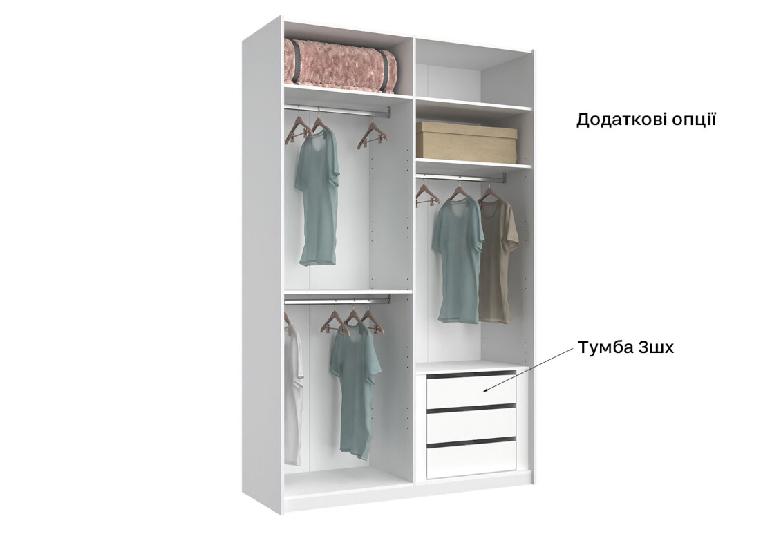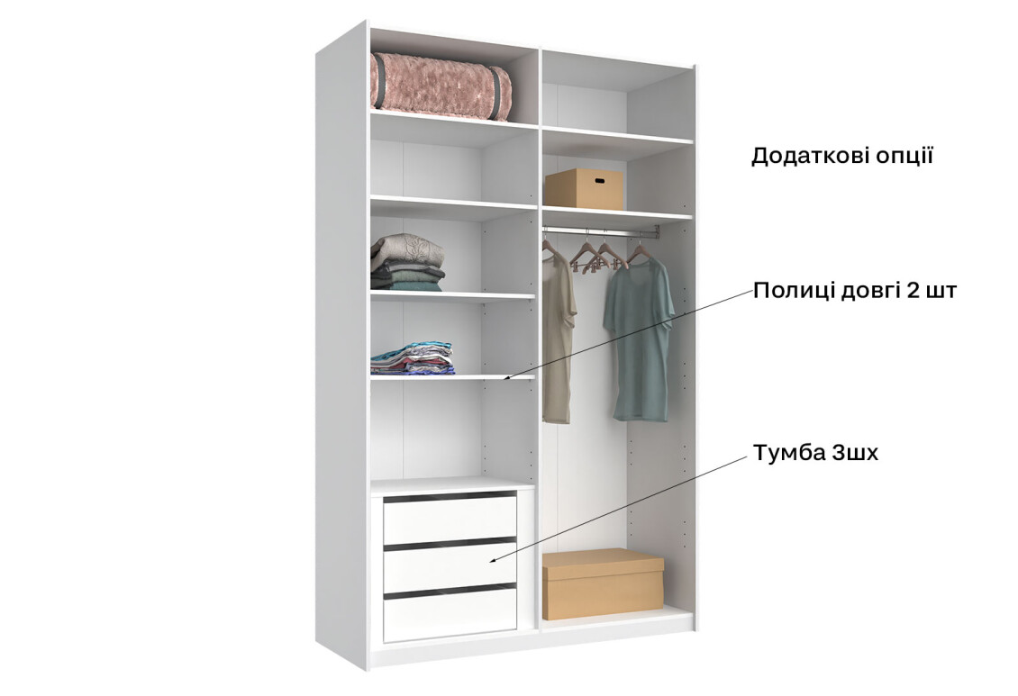 - Тип шафи-купе: 2D – зручний доступ до вмісту завдяки розсувним дверям.