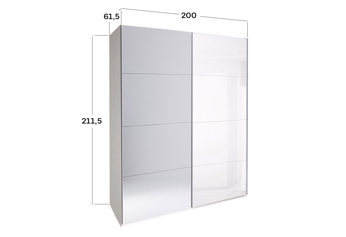 - Розмір: ширина 200 см, висота 211.5 см, глибина 61.5 см — оптимальні габарити для зберігання великих обсягів речей.