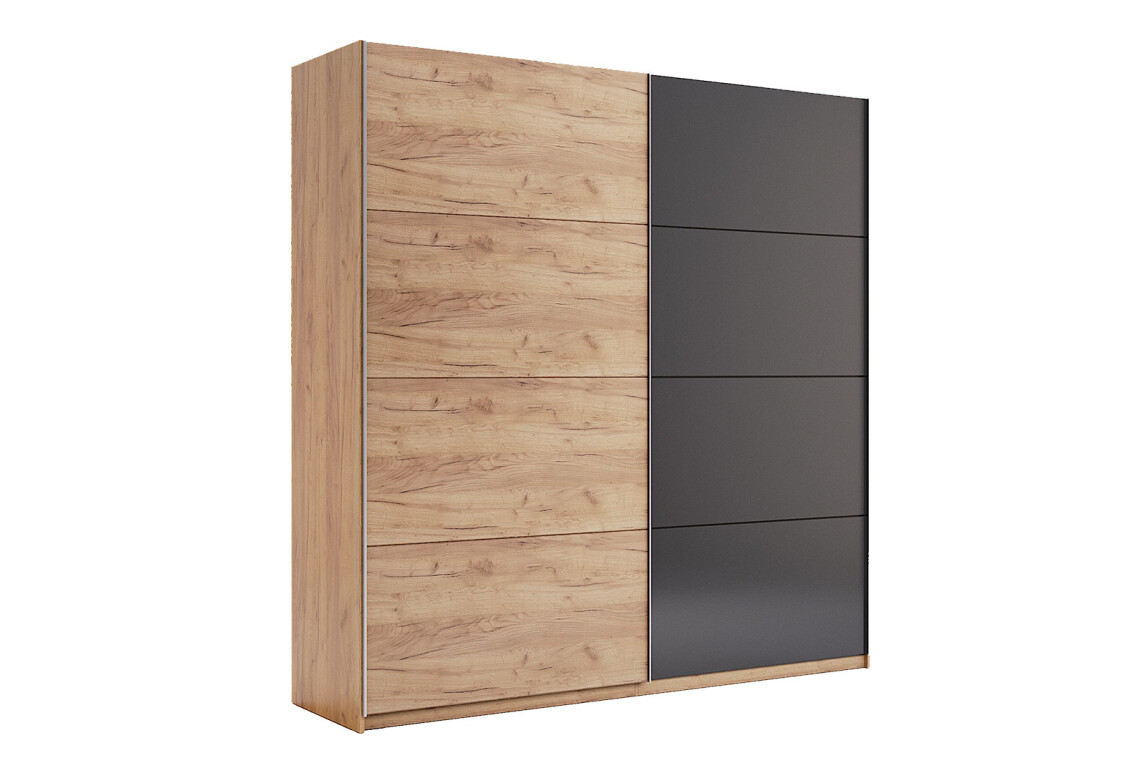 Шафа-купе MiroMark Луна 2-дверна — це сучасне та практичне рішення для вашого інтер'єру, яке поєднує в собі стильний дизайн та функціональність. Виготовлена з ламінованої ДСП, ця шафа має висоту 210 см, ширину 200 см та глибину 61,5 см, що робить її ідеальною для використання в спальні, вітальні або передпокої. Фасади шафи виконані в кольорах лава та дуб крафт, що надає їй елегантного вигляду, а також дозволяє легко поєднувати з іншими меблями. Завдяки своїй місткості, шафа забезпечить зручне зберігання одягу та аксесуарів, а система розсувних дверей дозволяє економити простір, що особливо важливо в невеликих приміщеннях.