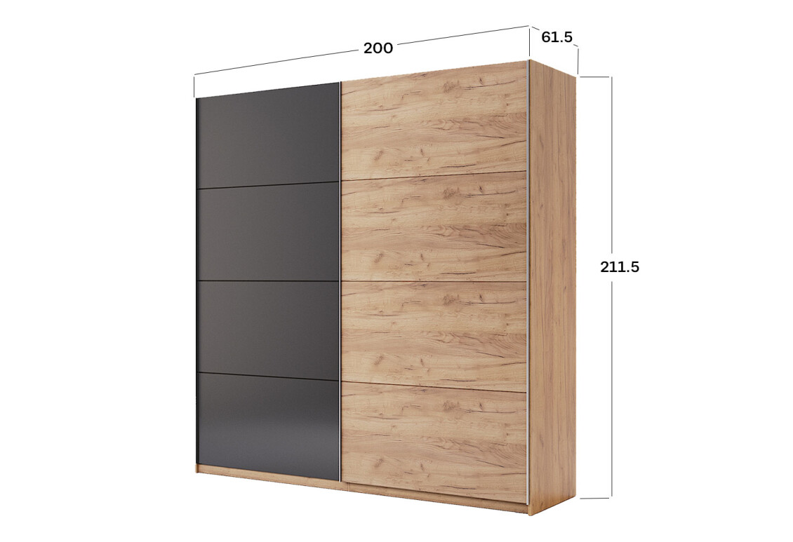 - Розмір: ширина 200 см, висота 211,5 см, глибина 61,5 см — ідеальні габарити для будь-якої кімнати.