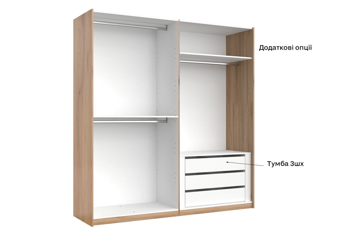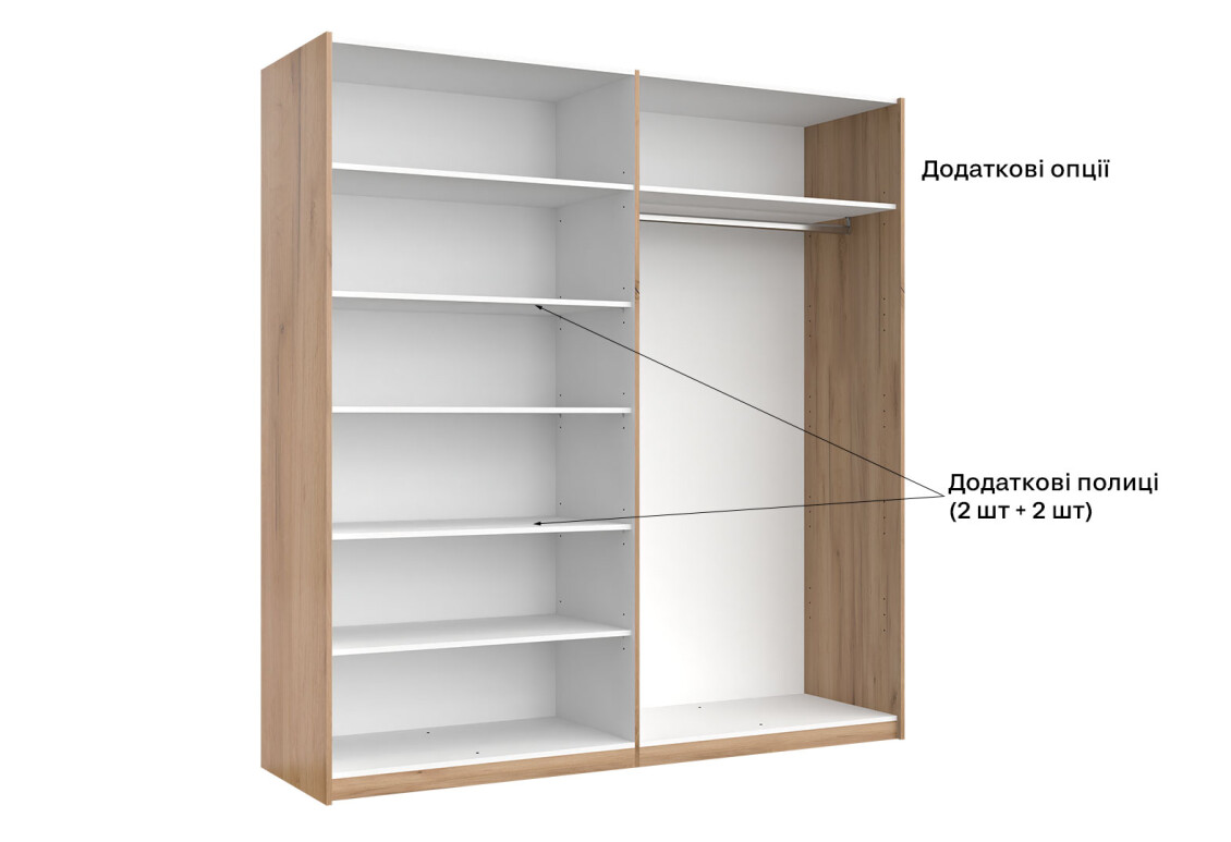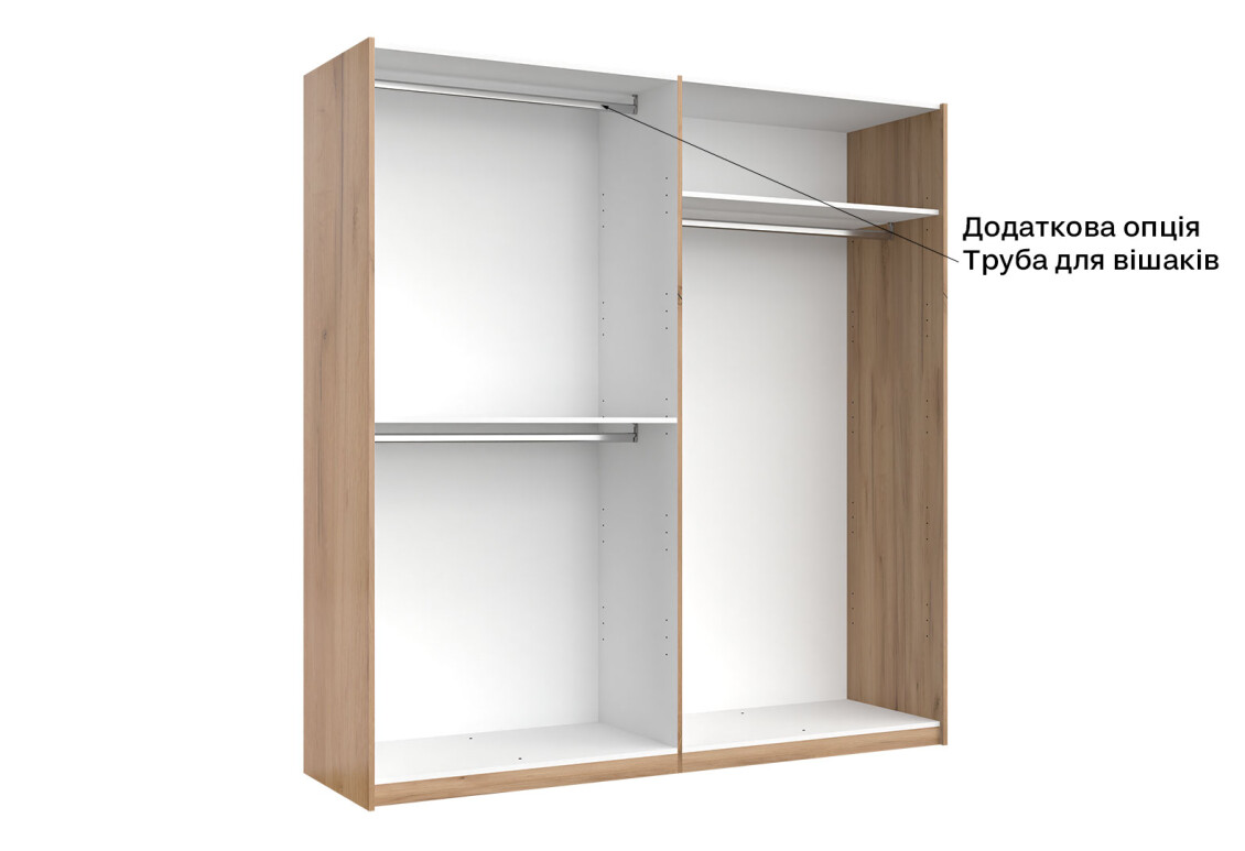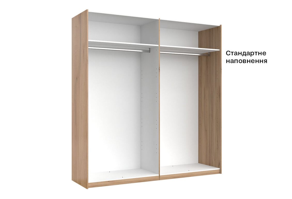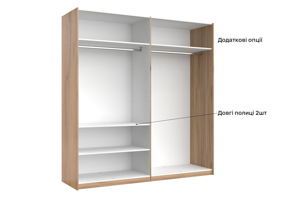 - Тип шафи-купе: 2D — зручна система розсувних дверей, що економить простір.