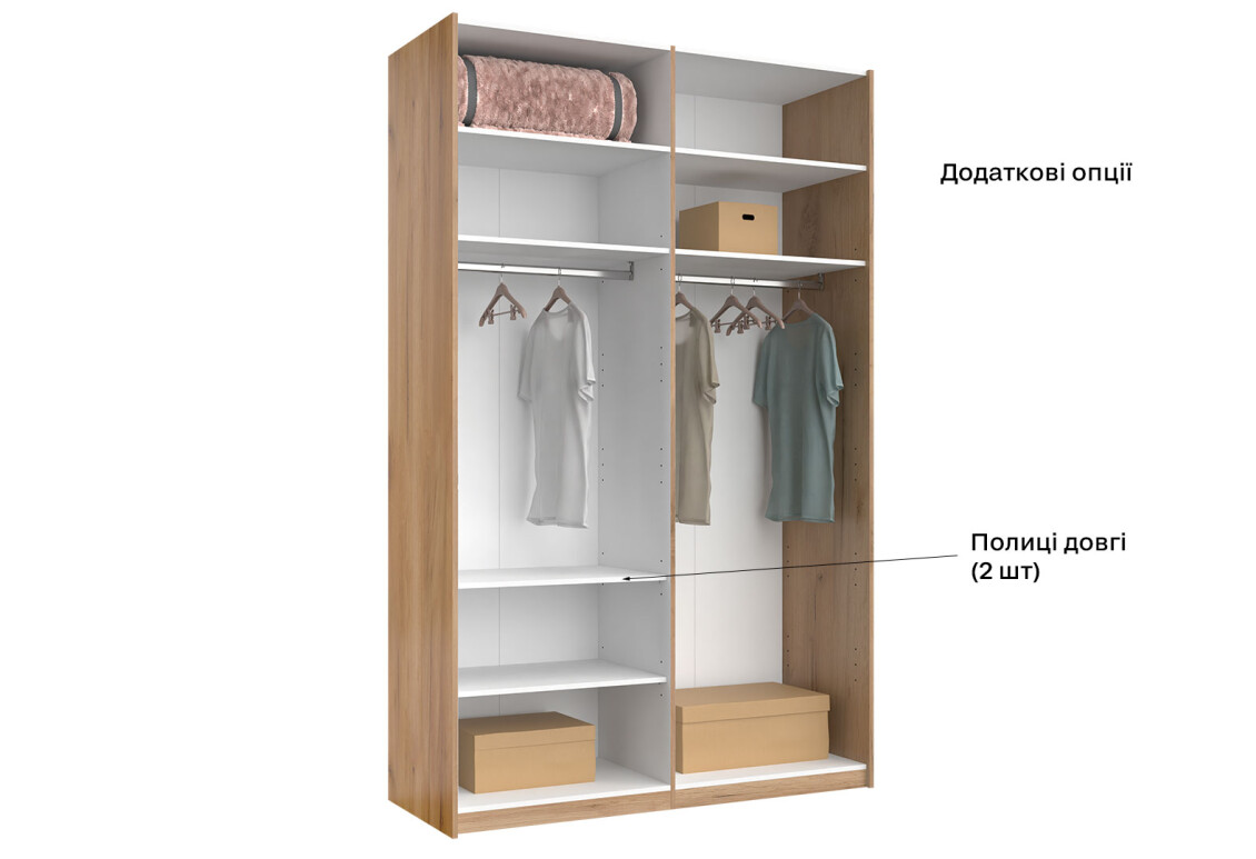 - Тип шафи-купе: 2D – зручна конструкція, що дозволяє легко відкривати двері та отримувати доступ до вмісту.