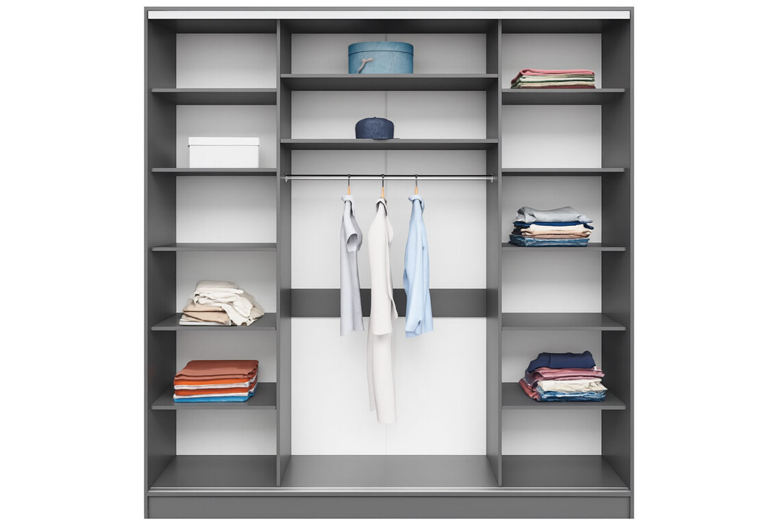 - Розмір: ширина 220 см, висота 240 см, глибина 60 см – ідеальні габарити для зберігання великої кількості речей без зайвого захаращення простору.