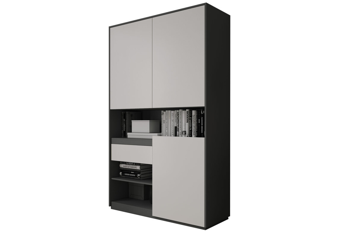Пенал Moreli RS-1 – це стильний і функціональний елемент меблів, який чудово впишеться в будь-який сучасний інтер'єр. Його висота 210 см і ширина 124 см забезпечують достатньо місця для зберігання речей, а комбінований дизайн з полицями, дверцятами та шухлядою дозволяє організувати простір максимально зручно. Виготовлений з ламінованої ДСП, пенал має високу надійність і довговічність, а також легкість у догляді. Завдяки сучасному стилю та елегантному кольоровому поєднанню антрациту та білого, він стане акцентом вашої кімнати. Окрім цього, пенал доступний у різноманітних модифікаціях кольорів, що дозволяє підібрати оптимальний варіант для вашого інтер'єру: білий, дуб сонома, венге магія, антрацит та інші.