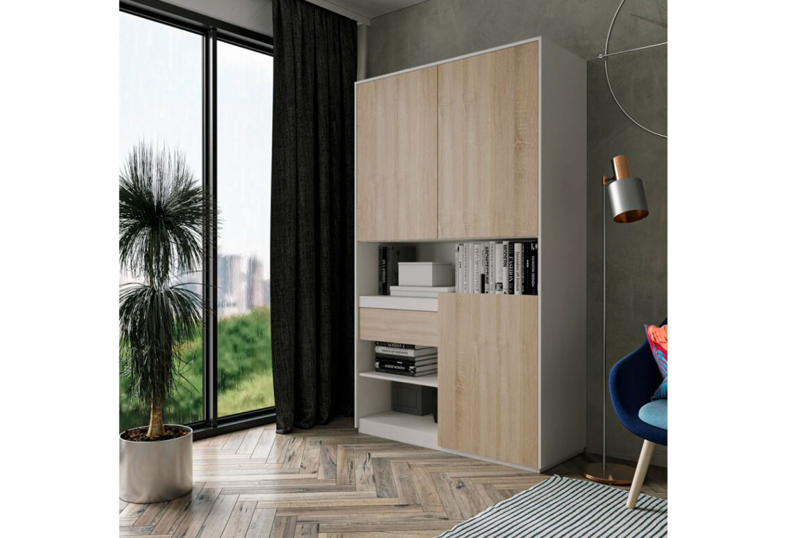 Пенал Moreli RS-1 – це стильний та функціональний елемент меблів, який ідеально підійде для сучасного інтер'єру. Завдяки своїм компактним розмірам (ширина 124 см, висота 210 см, глибина 50 см), він займає небагато місця, але водночас пропонує достатньо простору для зберігання. Цей пенал виготовлений з ламінованої ДСП, що забезпечує йому високу міцність і довговічність. Його сучасний дизайн у кольорах білий та дуб сонома додає елегантності та універсальності, що дозволяє легко вписати його в будь-який інтер'єр. Пенал має комбіновану конструкцію з полицями, дверцятами та шухлядою, що робить його надзвичайно практичним для зберігання різних речей. Важливо відзначити, що пенал доступний в різних модифікаціях кольору, що дозволяє вибрати оптимальний варіант для вашого дому.