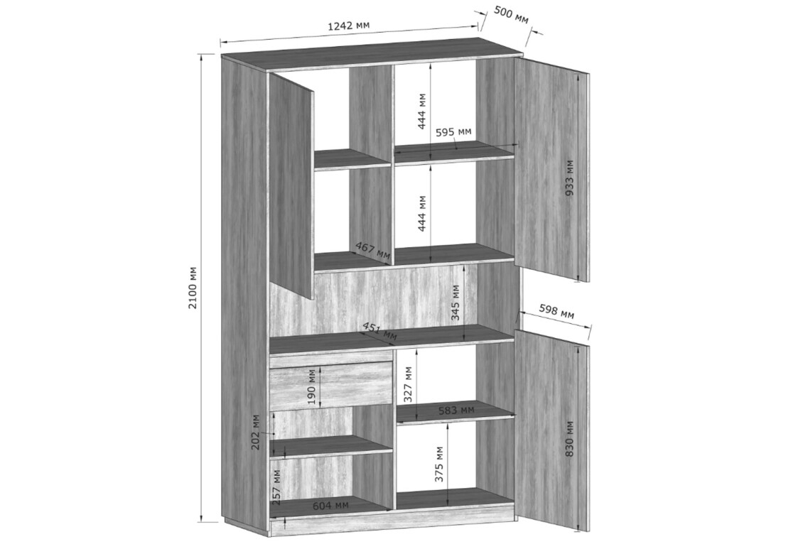 - Розмір: ширина 124.20 см, висота 210.00 см, глибина 50.00 см – ідеальні габарити для зручного використання в будь-якому приміщенні.