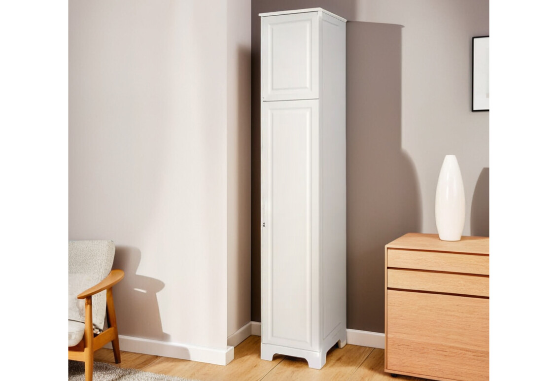 Шафа-пенал VIP-master Мадрид з високою антресоллю №1 – це ідеальне рішення для вашої спальні, яке поєднує в собі елегантний класичний стиль і практичність. Завдяки своїм компактним розмірам (ширина 52 см, висота 284,7 см, глибина 53,5 см), цей пенал чудово впишеться навіть в невеликий простір, забезпечуючи при цьому достатньо місця для зберігання. Закритий вид пеналу захищає ваші речі від пилу, а стильний білий колір додасть свіжості та легкості інтер'єру. Шафа виготовлена з якісних матеріалів: корпус з ламінованої ДСП та фасад з фарбованого МДФ, що забезпечує довговічність та надійність. Металеві ручки надають виробу сучасного вигляду та зручності у використанні.