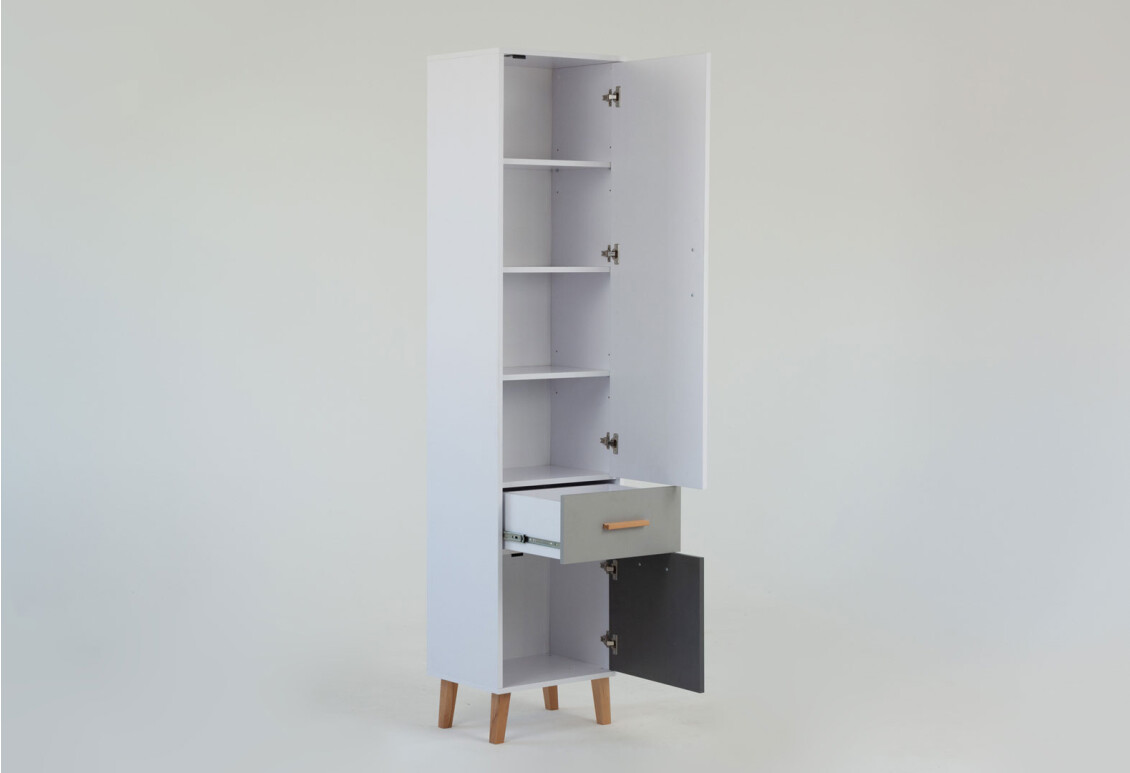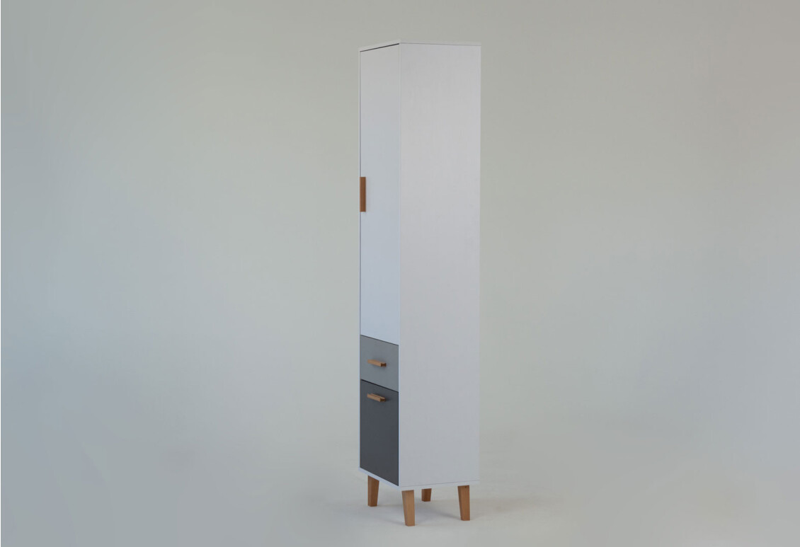 Шафа-пенал VMV holding Тіммі / Timmy – це стильне та функціональне рішення для організації простору вашої дитячої кімнати. Завдяки компактним розмірам (ширина 47 см, висота 199 см, глибина 36 см) вона ідеально впишеться навіть у невеликий простір. Виготовлена з якісної ДСП, шафа має закритий тип, що дозволяє зберігати речі в порядку та захищати їх від пилу. Особливістю даної моделі є наявність шухляди, що забезпечує додаткове місце для зберігання. Модерний дизайн у поєднанні з кольорами білий, графіт та шиншила робить цю шафу універсальним елементом інтер'єру, що легко комбінується з іншими меблями.