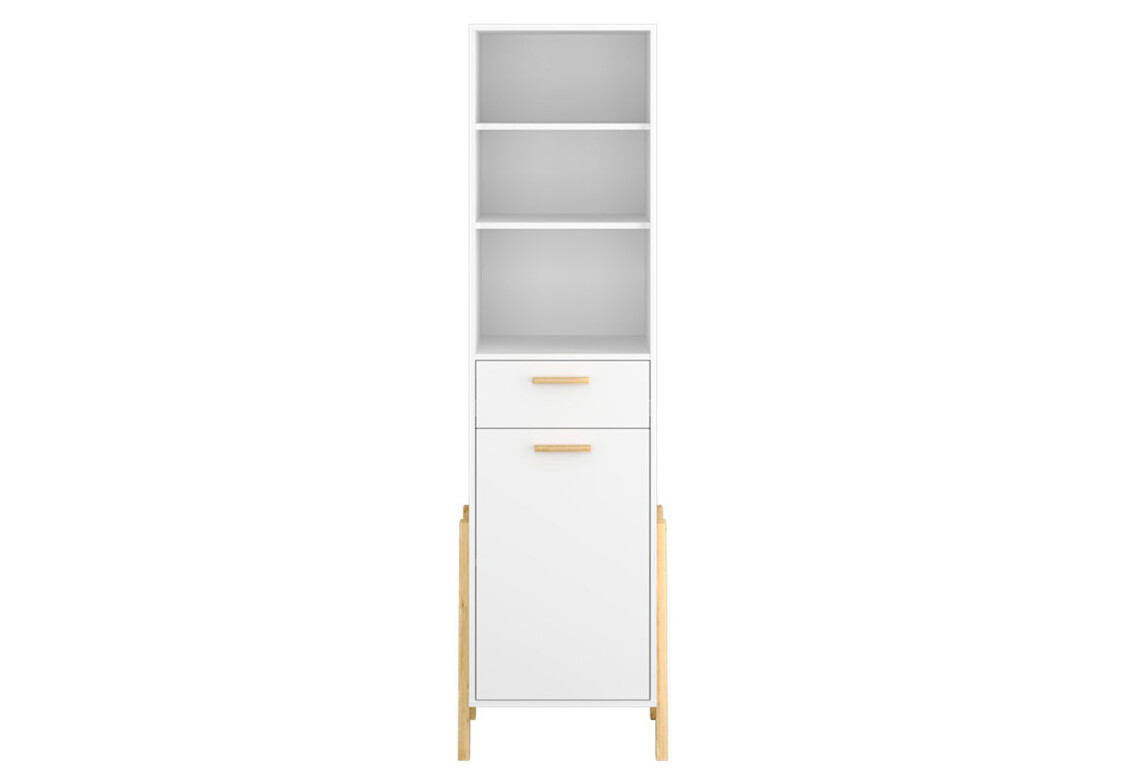 Шафа-стелаж комбінований VMV holding Бель з шухлядою - це ідеальне рішення для організації простору вашого дому. Завдяки своїм компактним розмірам (ширина 56.40 см, висота 197.00 см, глибина 41.00 см), вона стане чудовим доповненням до будь-якої кімнати, не займаючи багато місця. Цей стильний елемент меблів виконаний у сучасному стилі хай-тек, що підкреслює його елегантність та функціональність. Шафа виготовлена з якісних матеріалів: корпус з масиву бука та ДСП, що забезпечує високу міцність і надійність. Дерев'яні ручки додають виробу особливого шарму, а білий колір робить його універсальним для будь-якого інтер'єру. Цей стелаж не лише прикрасить ваш простір, а й дозволить зручно зберігати різноманітні речі, включаючи книги, документи або декоративні елементи.