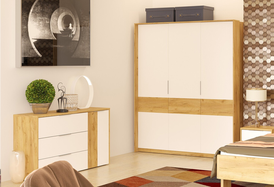 - Шафа VMV holding Аванті 3-дверна 185 см Дуб крафт золотий/Біла платина, 1 шт