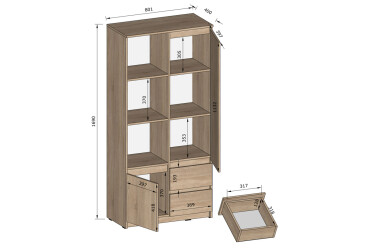 Шафа-пенал Kredens furniture Естетик D-0002 з полицями та шухлядами 80 см, дуб аппалачі / антрацит