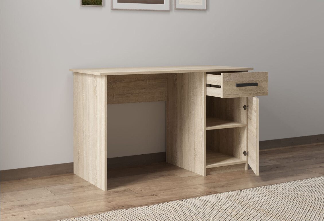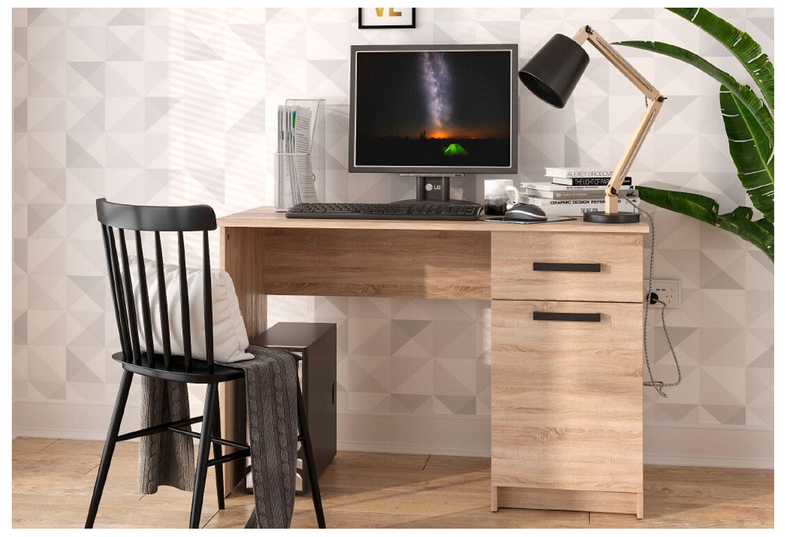 Письмовий стіл Kredens furniture СК-2 — це ідеальне рішення для вашого робочого простору. Завдяки своїм компактним розмірам (115x55 см) та функціональному дизайну, він стане незамінним помічником у виконанні повсякденних завдань. Стіл виготовлений з ламінованої ДСП, що забезпечує високу міцність і довговічність. Модерний стиль у поєднанні з кольором дуб сонома робить цей стіл не лише практичним, але й естетично привабливим елементом інтер'єру. Додаткова тумба та висувний ящик надають можливість зберігати важливі документи та канцелярію під рукою, що робить робочий процес більш організованим. Що важливо, стіл доступний у кількох кольорах: венге, аляска сіра та білий сніг, що дозволяє підібрати ідеальний варіант для будь-якого інтер'єру.